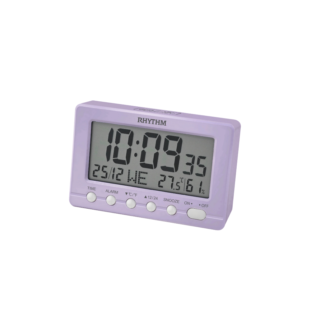 LCT113NR12 Digital Clocks (Increasing Beep Alarm, Snooze Time 1-30 Mins Selectable, LED Light, Calendar, Thermometer, Hygrometer) Plastic Purple 12×7.6×5.7cm