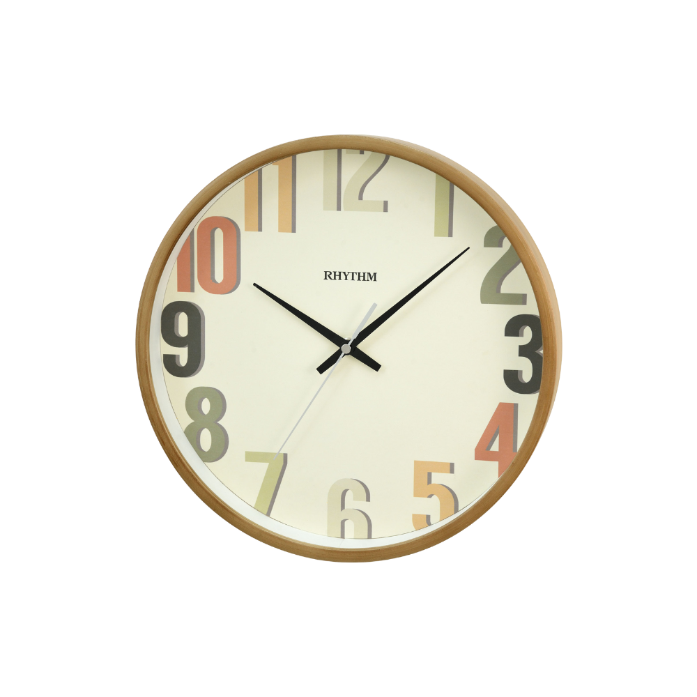RHYTHM 木製掛鐘採用優質木材製成,具有自然的表面,展現了木材豐富的紋理和質感。