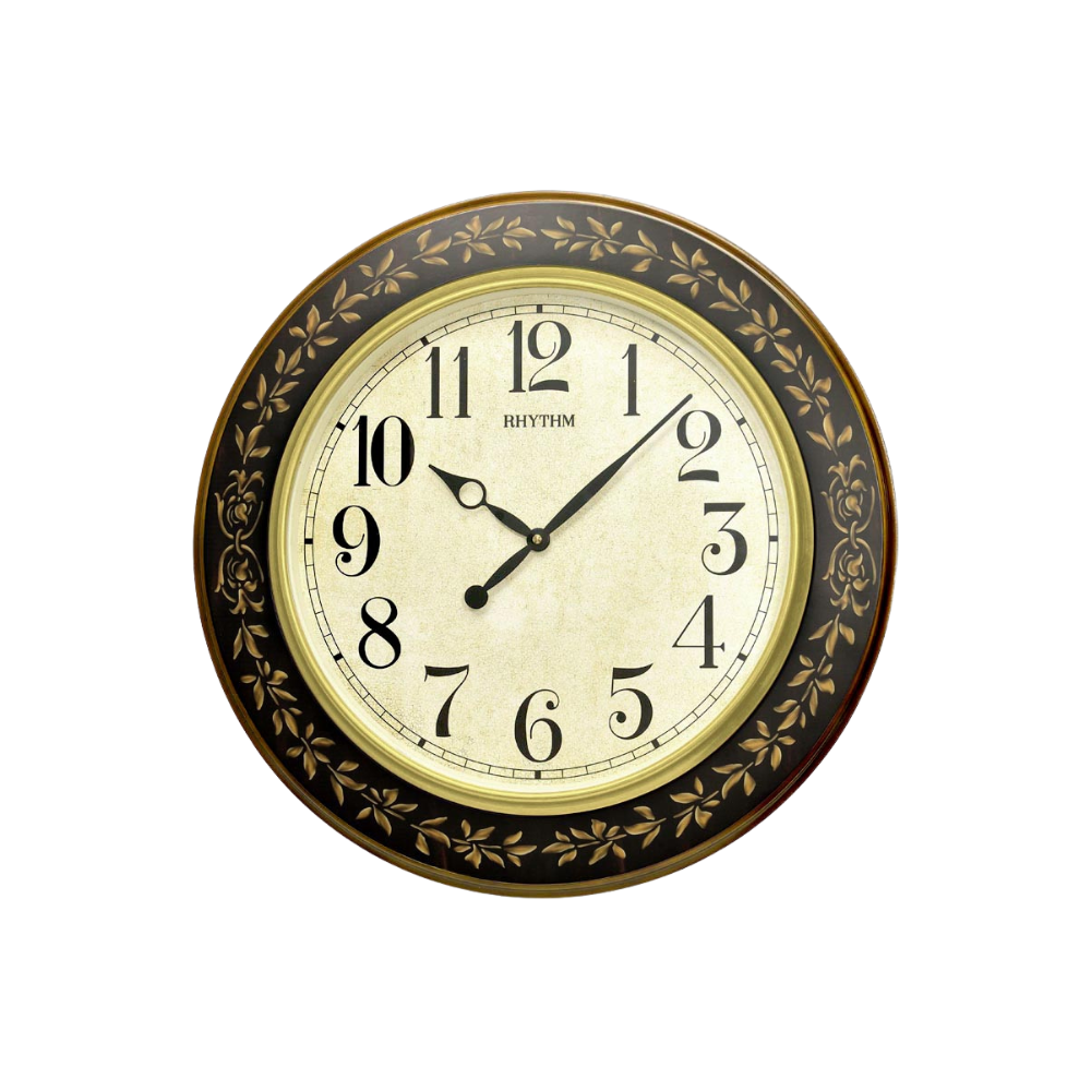 RHYTHM 木製掛鐘採用優質木材製成,具有自然的表面,展現了木材豐富的紋理和質感。
